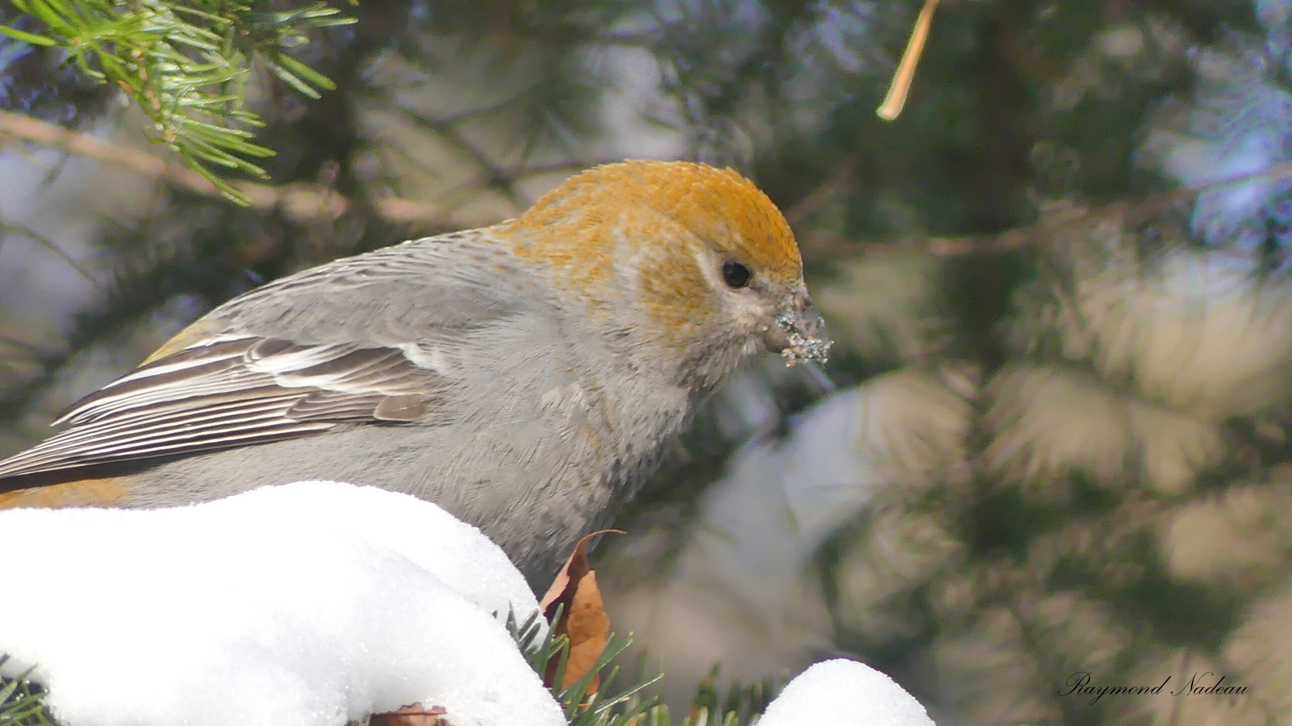 J’aimerais vous soumettre une photo d’un oiseau que j’ai pris aujourd’hui il y en avait beaucoup dans la cour de ma voisine. Elle a un érable Giguère dans cette partie de la cour et les oiseaux semblaient manger des fruits dans la neige.