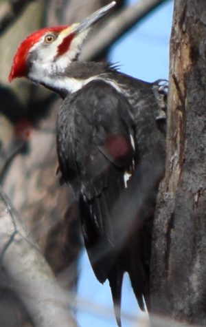 Le Grand Pic est notre plus grand... pic. Il apprécie les vieilles forêts de feuillus et les grands arbres des terrains résidentiels. S'il s'attaque à un arbre, c'est que l'arbe est déjà attaqué par des insectes (qui, eux-mêmes, attaquent un arbre qui est déjà mal en point), car il mange les insectes. Le pic n'est donc pas la cause de la décrépitude de votre arbre, ce n'est que la suite logique dans la nature.