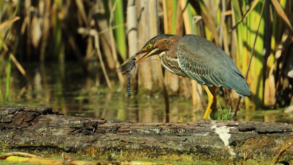 Le Héron vert est un petit héron restreint au sud du Québec. Il fréquente les marais d'eau douce.