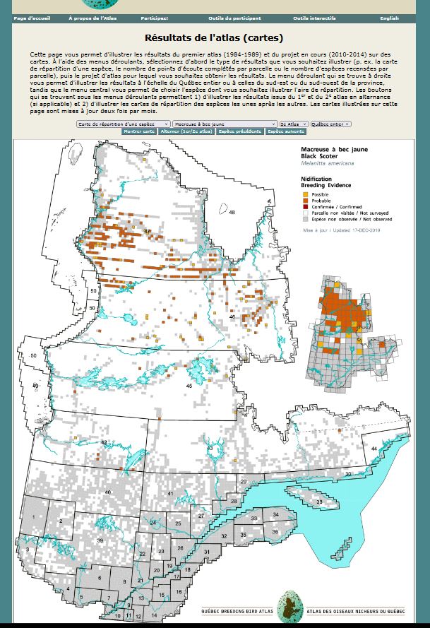 Pas facile. Ils sont dans le Nord de la province. Voici une carte de ce qui a été trouvé lors des travaux du dernier atlas des oiseaux nicheurs, en image jointe. Vous pouvez aussi entrer le nom de l’espèce sur la page de l’atlas. 🙂 https://www.atlas-oiseaux.qc.ca/donneesqc/cartes.jsp?lang=fr