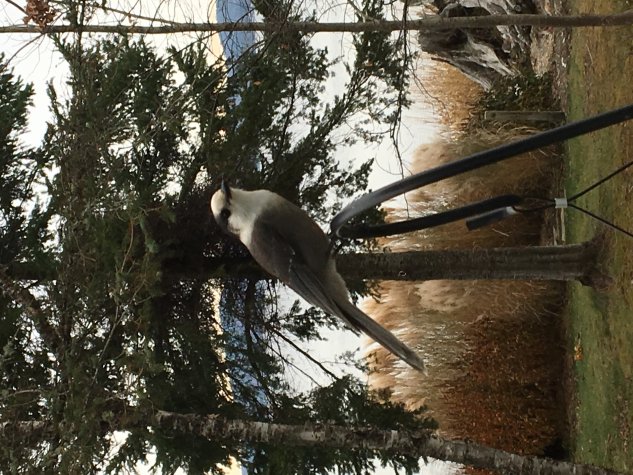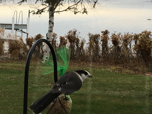 Il s’agit de Mésangeais du Canada, un proche parent du Geai bleu. Le mésangeai vit dans la forêt boréale et il est rare qu’il s’approche des habitations. Dans quelle région habitez-vous ? Avec un peu de chance vous pourrez garder vos nouveaux visiteurs tout l’hiver. Le mésangeai s’apprivoise facilement. Dans les endroits fréquentés par les campeurs et randonneurs, il vient chercher sa nourriture directement dans la main des gens. Merci de votre commentaire.