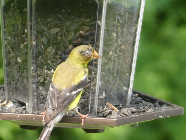 Aujourd’hui, j’ai photographié deux Gros becs errants avec des yeux boursouflés. C’est la première fois que je fais cette observation aux mangeoires. Je suis si désolée!