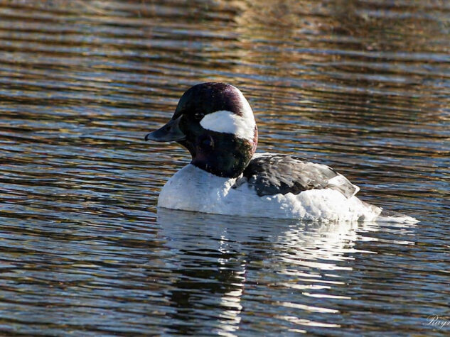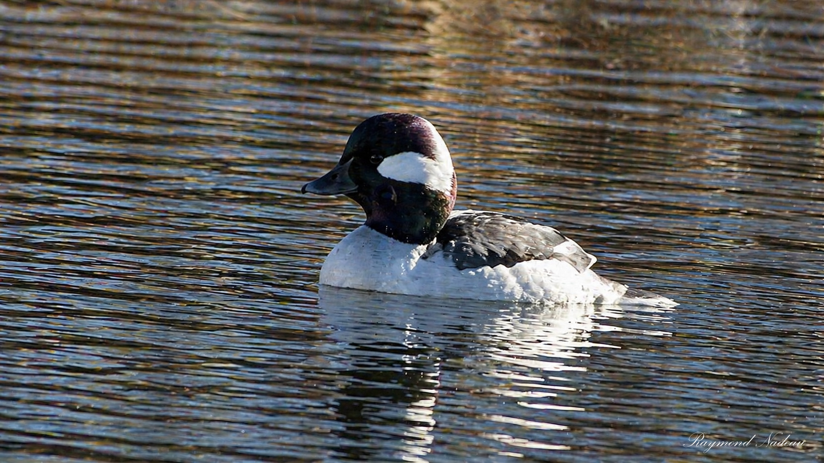 Même avec un faible éclairage, on reconnait facilement le Petit Garrot mâle. On n'a pas besoin de voir ses reflets. -Mireille Poulin