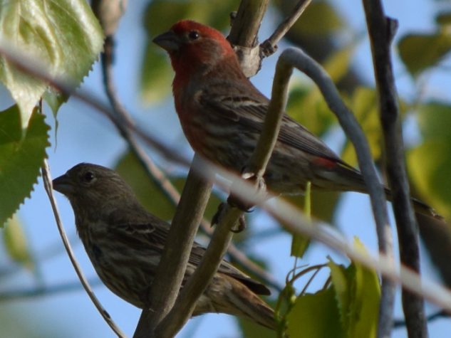 Roselin familier mâle qui nourrissait son juvénile. Vu un seul pour le moment.