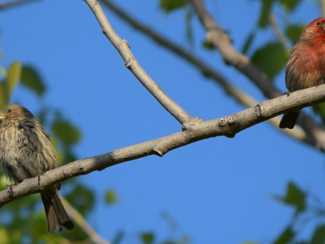Roselin familier, mâle et femelle côte à côte
